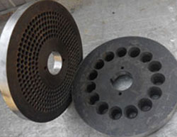 The shape of pellet machine flat die is discoid and many holes spread on it. The cylinder shape of final pellets are formed through these holes. The diameter of holes is from 2mm to 10mm, they are manufactured according to your specific raw material to make sure best yield of your pellets. In GEMCO, you will have one customized pellet machine flat die for one kind of raw material.